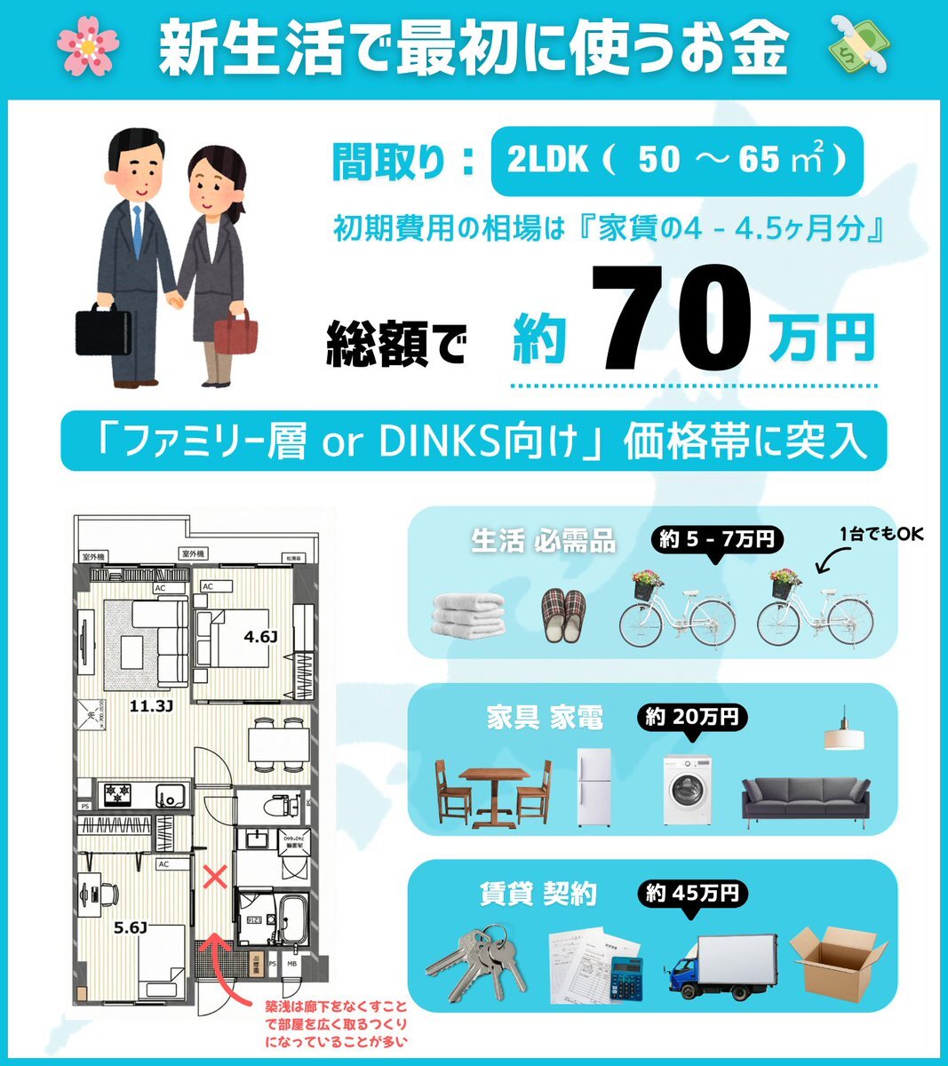 賃貸の新生活・同棲 うちは「2LDK 69.43㎡」なぜ平均より広いのか知りたい人は 【エリア】:初期費用 (家賃) 【北海道】:30万円(6.8万円) 【青森県】:22万円(5.1万円) 【岩手県】:27万円(6.0万円) 【宮城県】:31万円(6.9万円) 【秋田県】:20万円(4.6万円) pic.x.com/VSxy99Cfrg x.com/roomxh/status/…