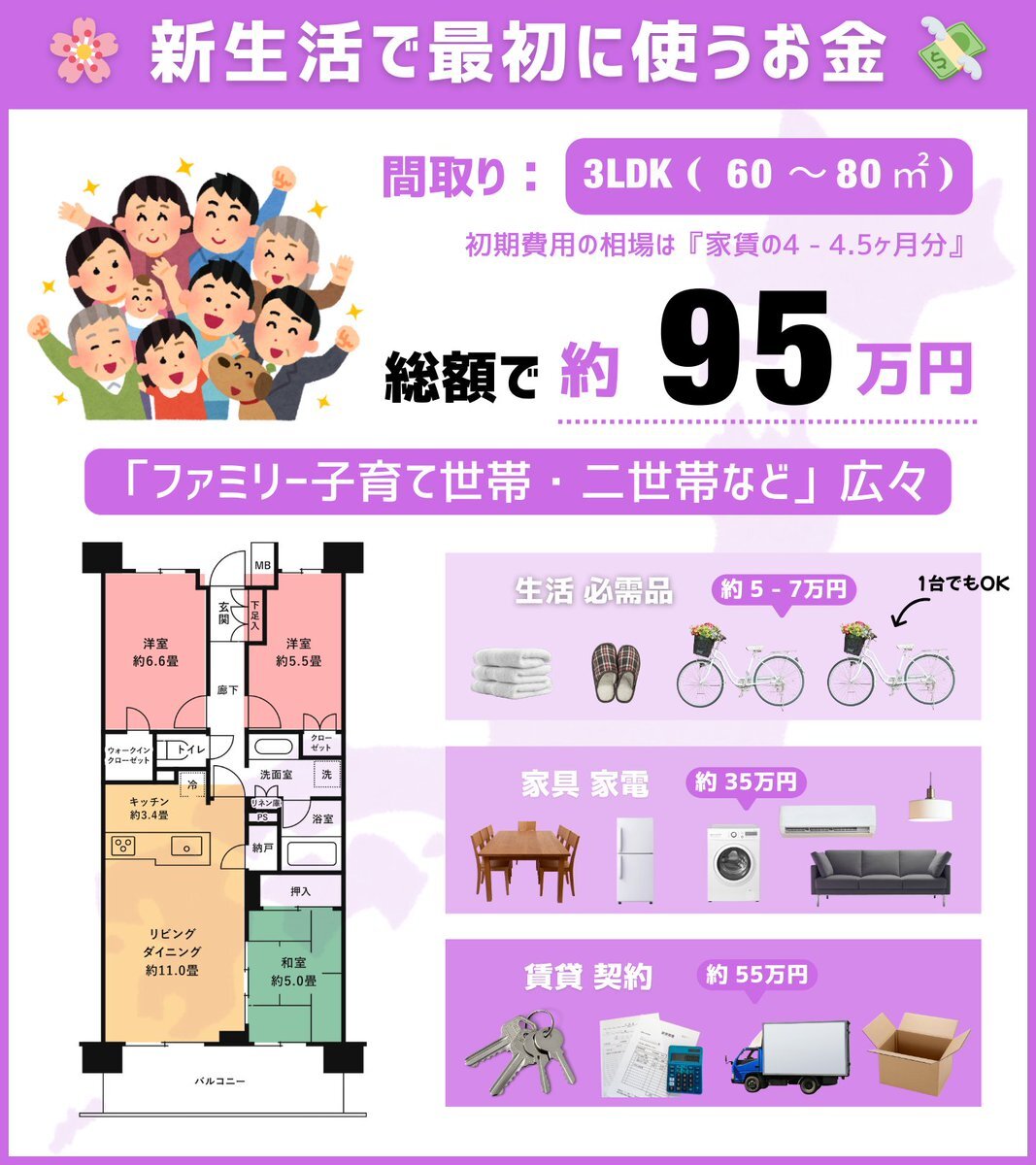 に関連するツイートTwitterファミリー向け賃貸『 3LDK 』 転職や異動がある人はチェック↓ 【エリア】:初期費用 (家賃) 【北海道】:36万円(8.2万円) 【青森県】:26万円(5.9万円) 【岩手県】:32万円(7.2万円) 【宮城県】:37万円(8.3万円) 【秋田県】:23万円(5.2万円) 【山形県】:26万円(5.8万円) pic.x.com/Zg0JTEFCp4 x.com/roomxh/status/…