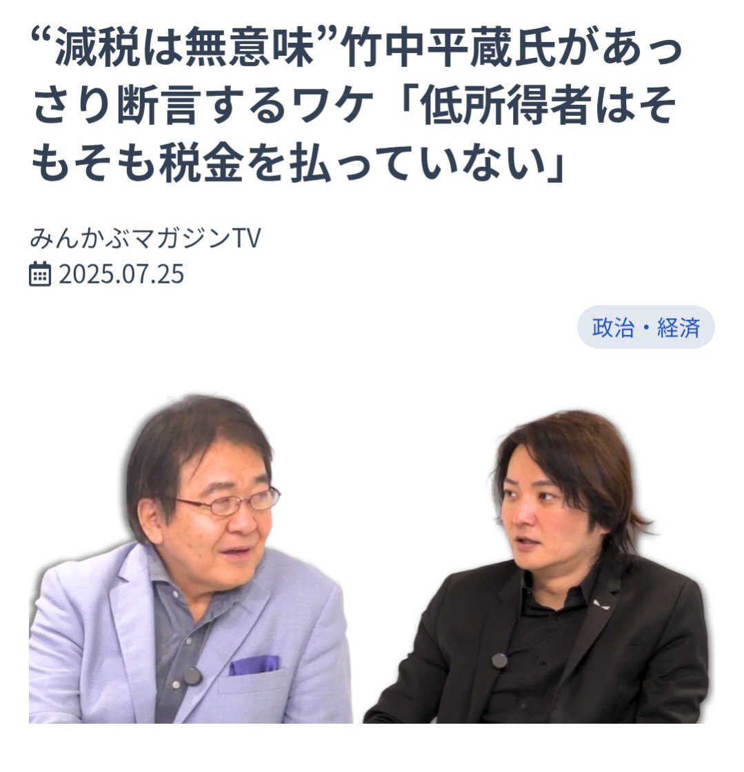 無職でも生きる為に必要な光熱費や食料とかに掛かる消費税という税金払ってるだろ❗🤬 #竹中平蔵は日本人の敵 #自民党と竹中平蔵 #自民党は日本人の敵 x.com/hokkori_nekko/…